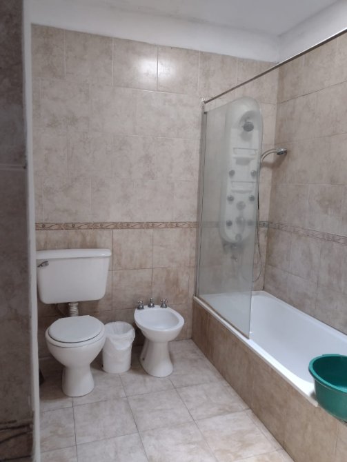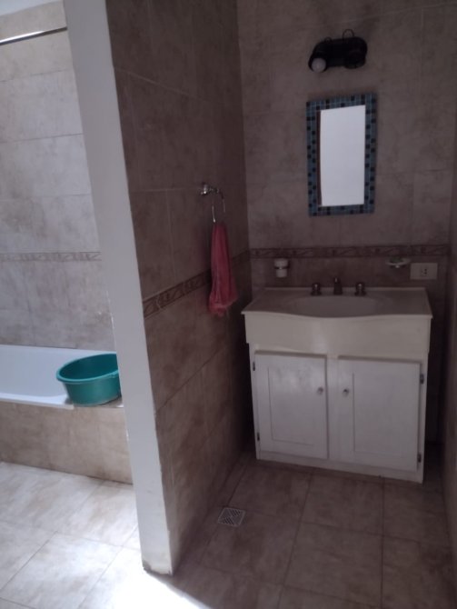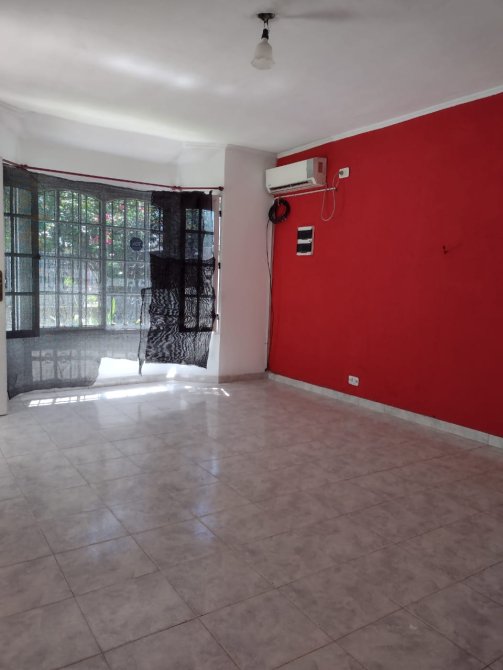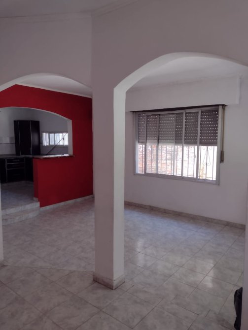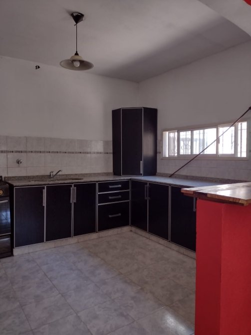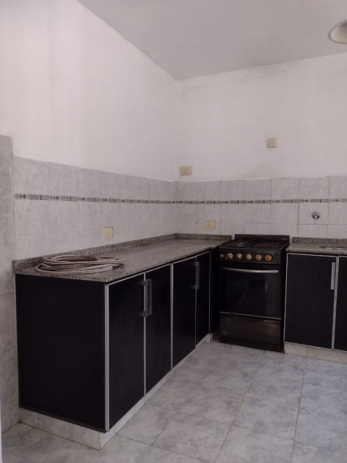 Cocina de 5x4 metros con muebles bajos y mesada de mármol.