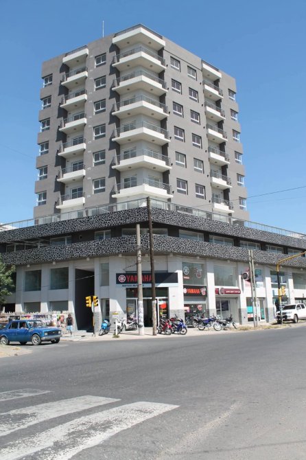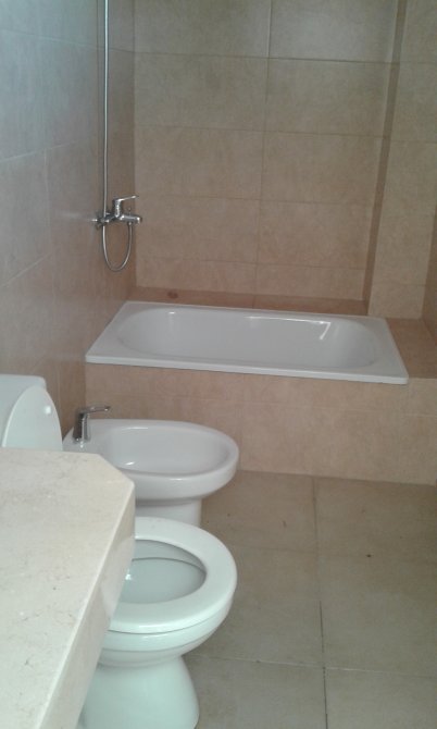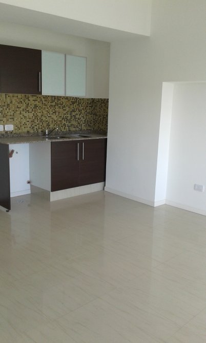 Mueble bajo mesada con puertas abatibles y cajonera. Anafe tipo vitrocerámico de dos elementos. Alacena de un estante con puertas abatibles.